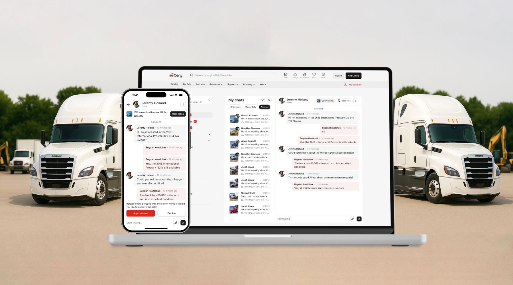 No more switching between emails or phone calls. Whether you’re a buyer asking about equipment details or a seller managing multiple inquiries, our chat keeps everything in one place — with full context linked directly to your listings.