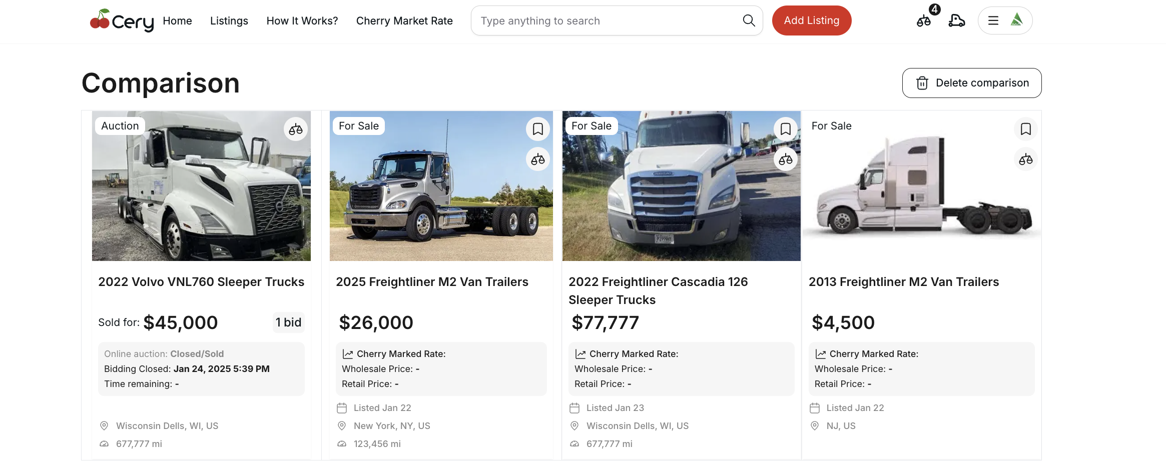 We're excited to introduce the Comparisons feature, making it easier than ever to evaluate multiple listings side by side! Whether you're deciding between similar trucks or analyzing different deals, our new comparison tool gives you a clear breakdown of key details.